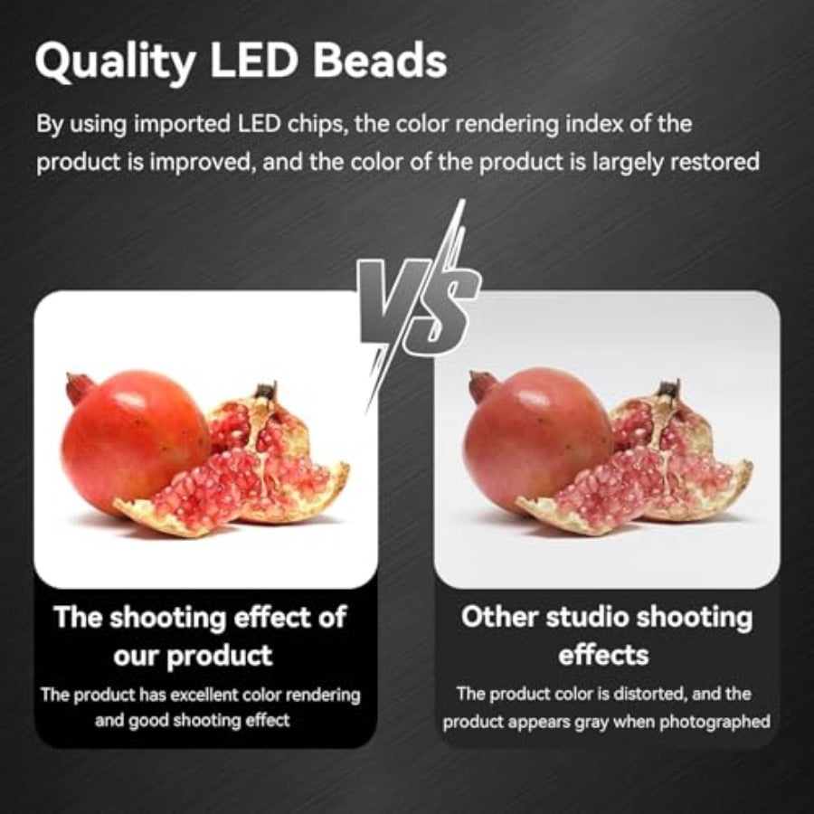 ✅ Built-In LED Lighting: BrightBox includes a built-in LED light strip that delivers even, neutral lighting. This eliminates harsh shadows and uneven tones, creating a clean, studio-quality look in every photo.